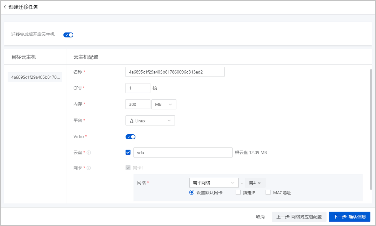 4. 目标云主机配置。